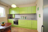 The apartment is partially furnished, there is a built-in kitchen appliance in the kitchen.