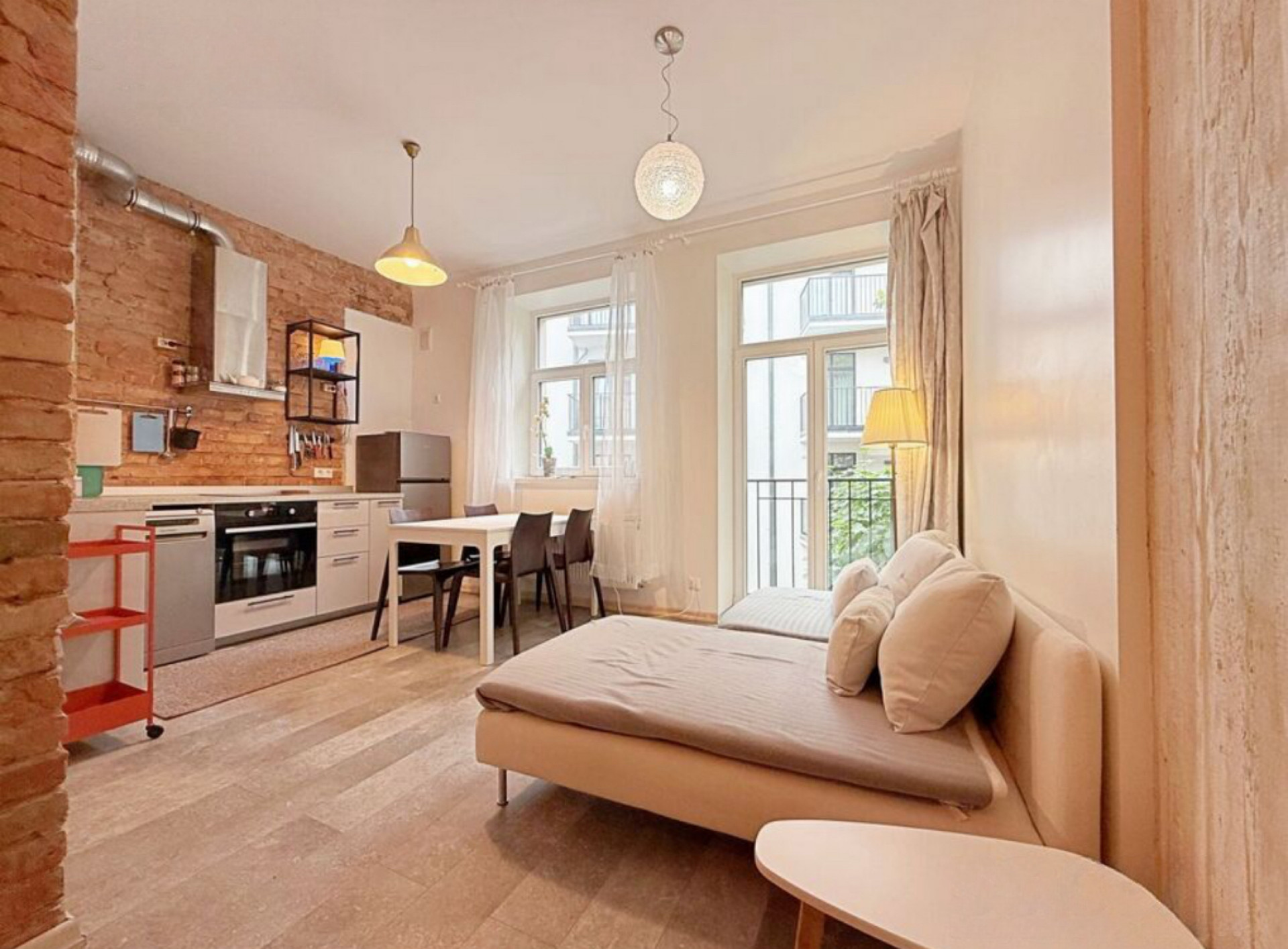 - spacious living room and built-in kitchen equipped with all necessary household appliances, including a dishwasher;