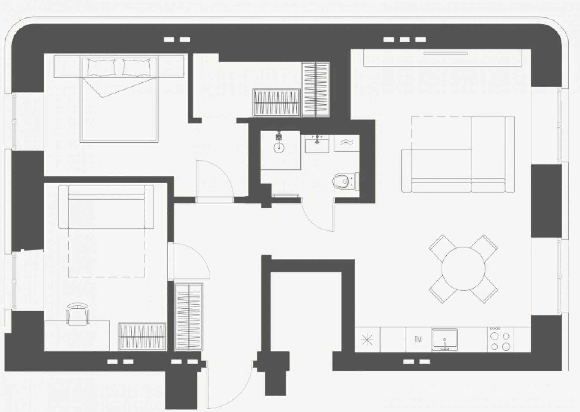 The spacious 3-room apartment No. 51 in the Colonel’s House project is located on the third floor of the faсade building and offers 70.1 m² of versatile space suitable for creating a modern and comfortable home. Delivered in shell & core condition, the apartment has no internal partition walls, allowing the future owner to design a personalized layout with an open kitchen-living area, one or two bedrooms, a home office, or a relaxation zone. High ceilings and large windows provide abundant natural light and a sense of openness.