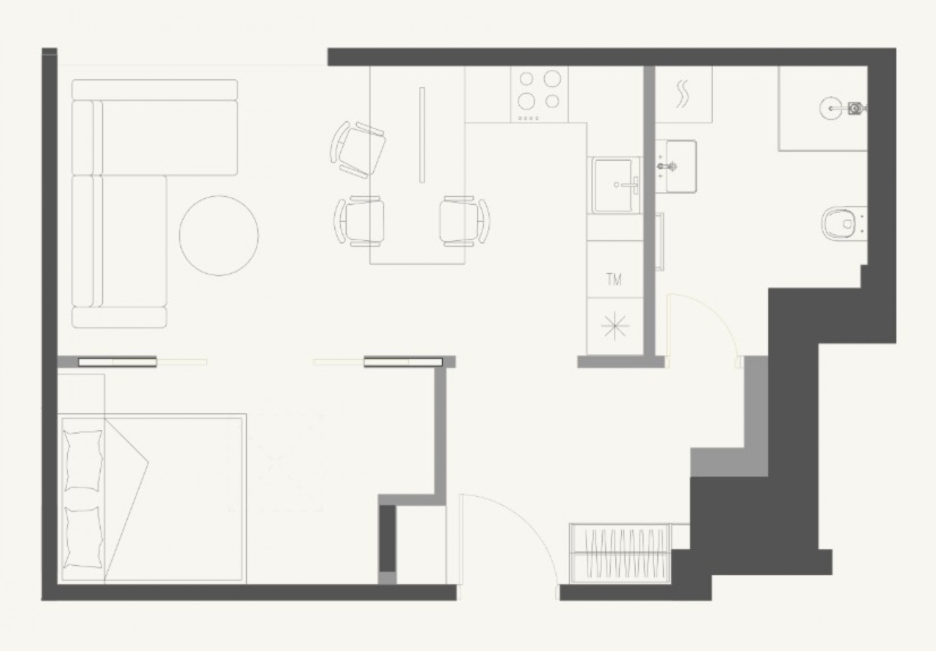 Apartment No. 55C is a well-proportioned 2-room residence located on the second floor of the façade building in the Colonel’s House project, offering 42 m² of flexible space. The apartment is delivered in shell & core condition, without internal partition walls, giving future owners the freedom to design their ideal layout — whether that is an open plan kitchen-living room, a comfortable bedroom, a home office or a cozy relaxation area. Large windows and high ceilings create a bright and airy atmosphere full of natural light.