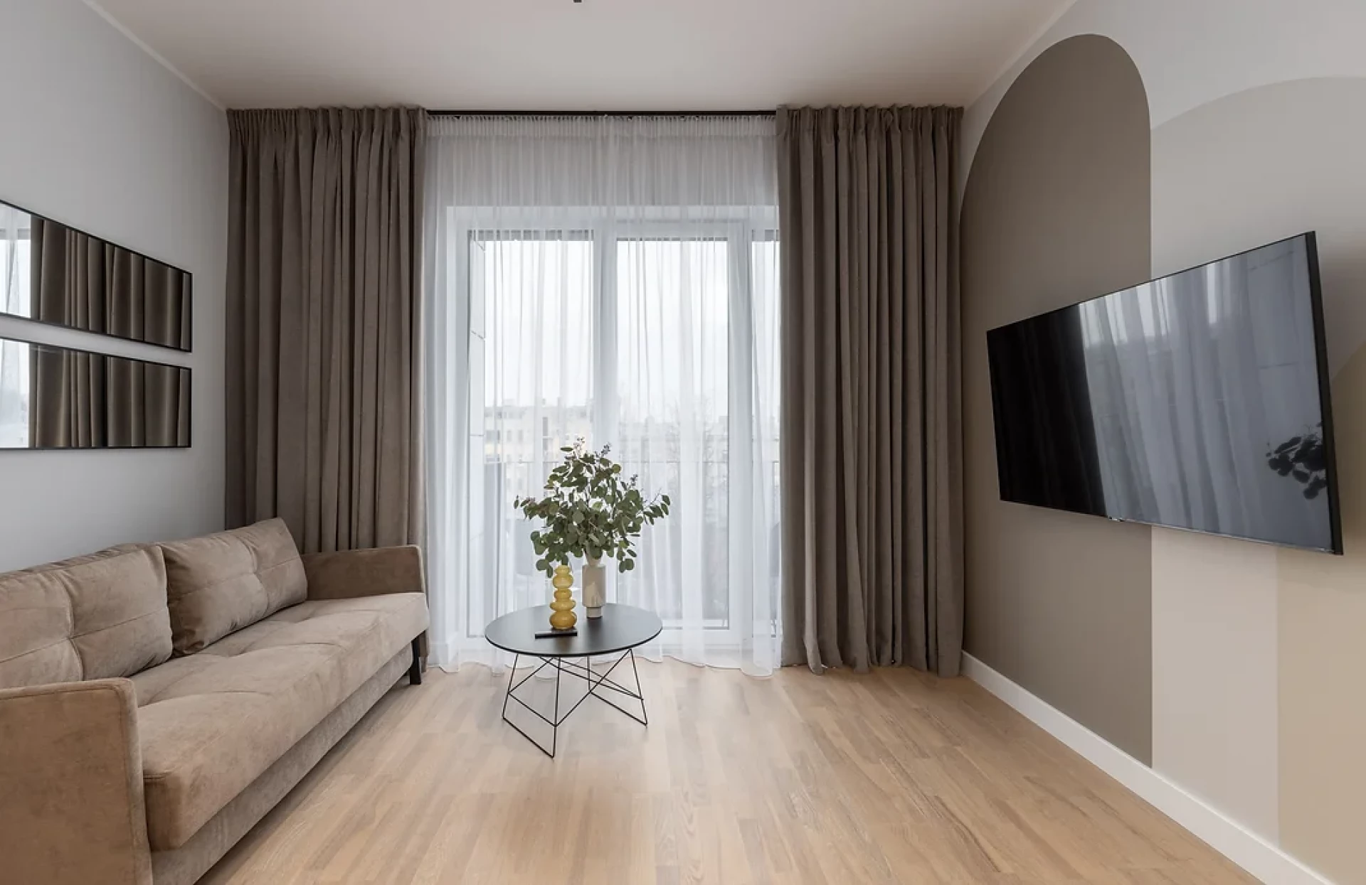 This flat is ideal for those who appreciate comfort and functionality. The spacious living room is combined with a modern kitchen - a single space for relaxing and receiving guests.