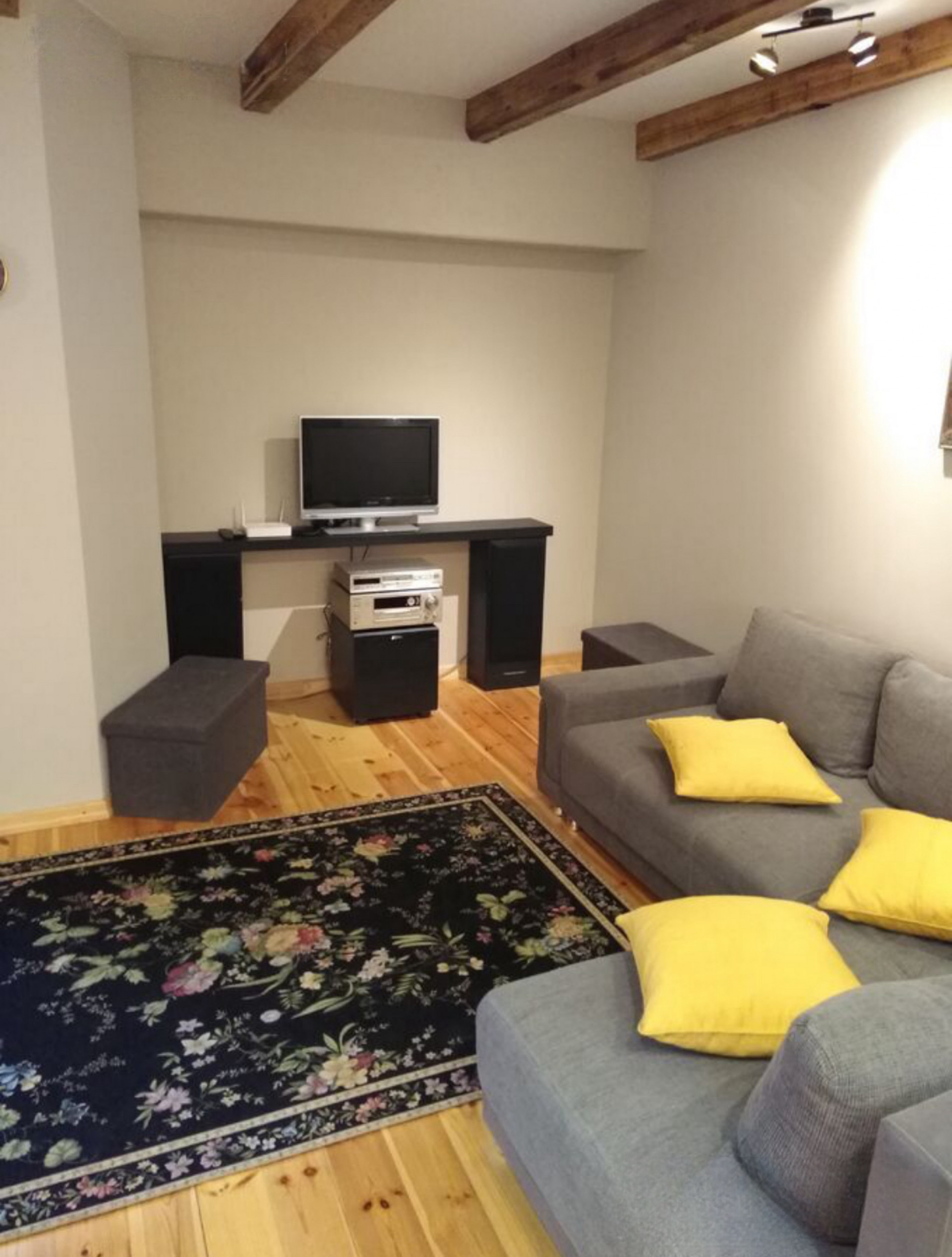 • A spacious living room combined with a kitchen equipped with all necessary appliances.
