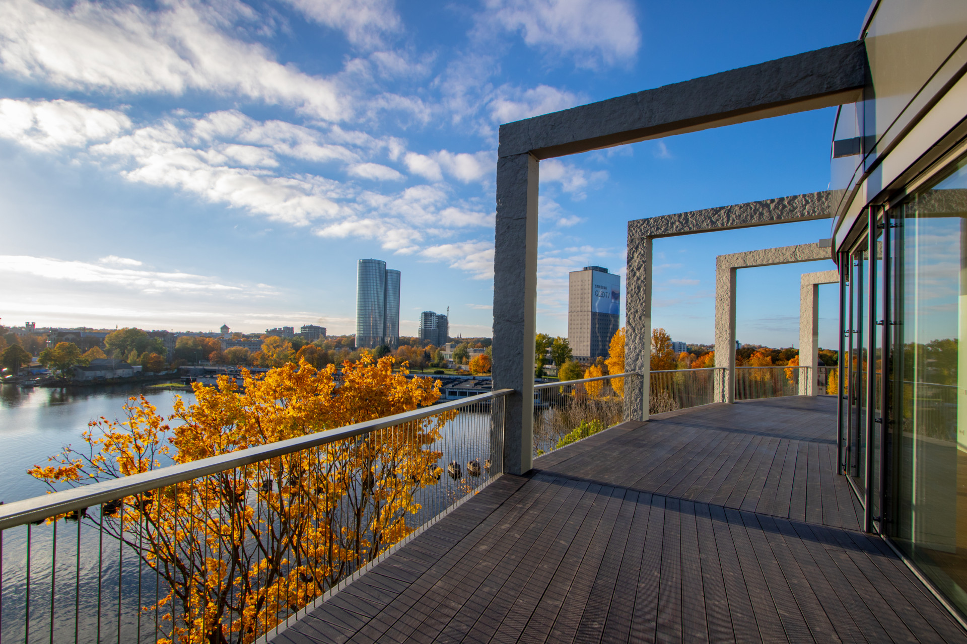 River Breeze Residence является уникальной достопримечательностью городского силуэта, расположенной на берегу Даугавы. Из элитных апартаментов открывается вид на панораму Старой Риги. Расположена в самом сердце Риги, но при этом возникает ощущение, как-будто живешь в тихом и зеленом городке с садом.