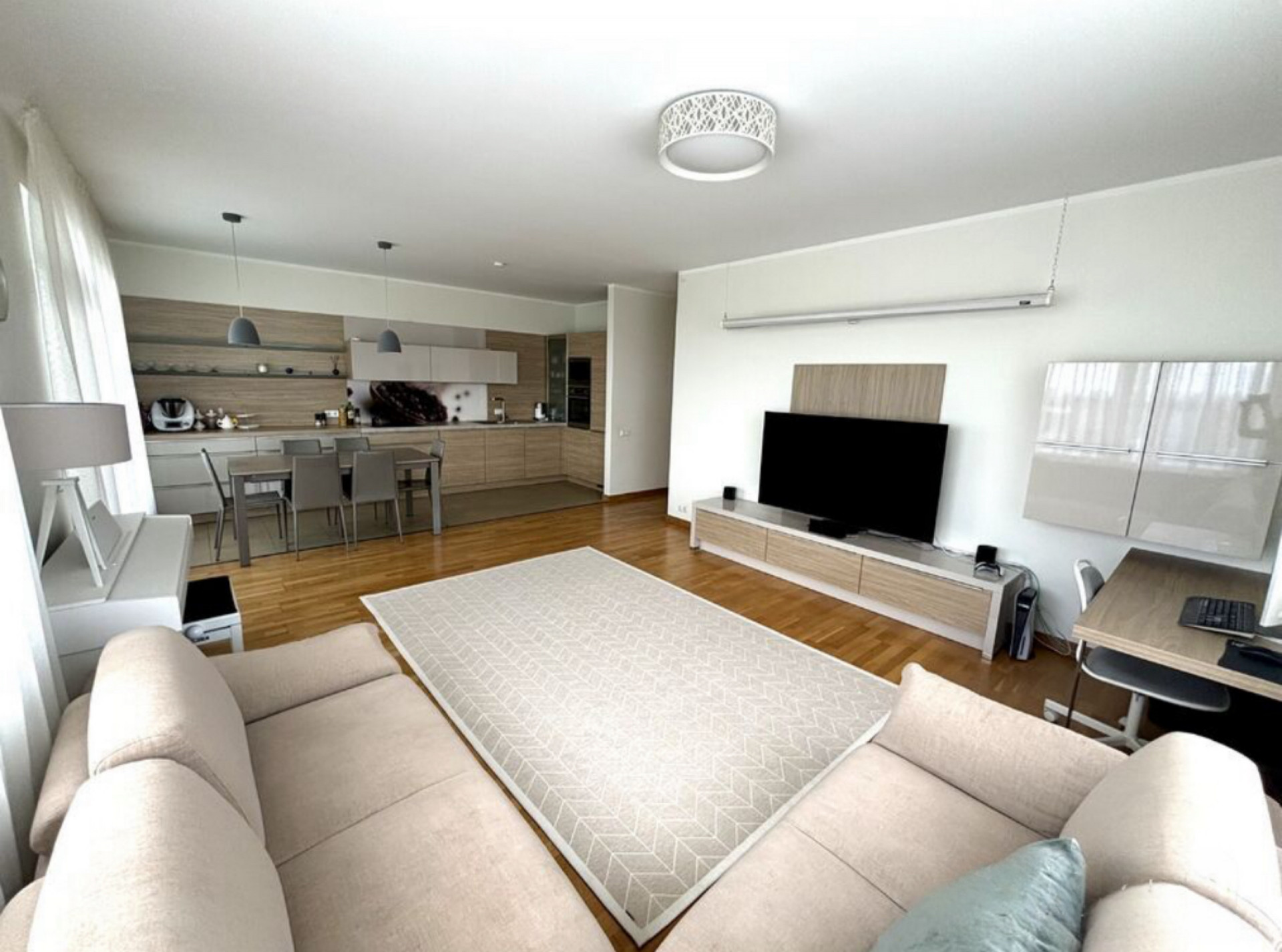 — Spacious living room combined with kitchen and dining area