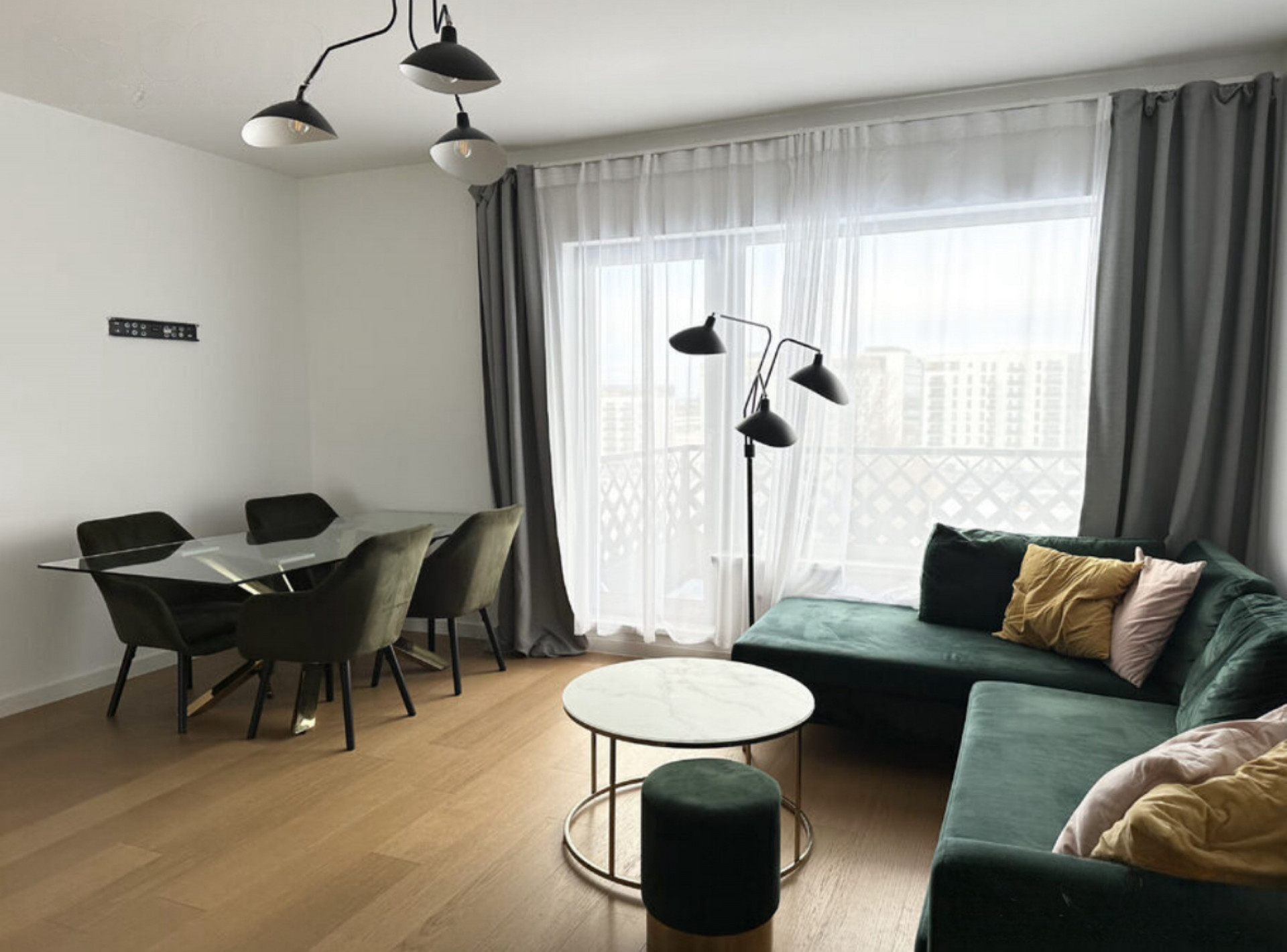 A modern, bright 3-room apartment with built-in appliances and furniture in the center of Riga, Skanstes district.