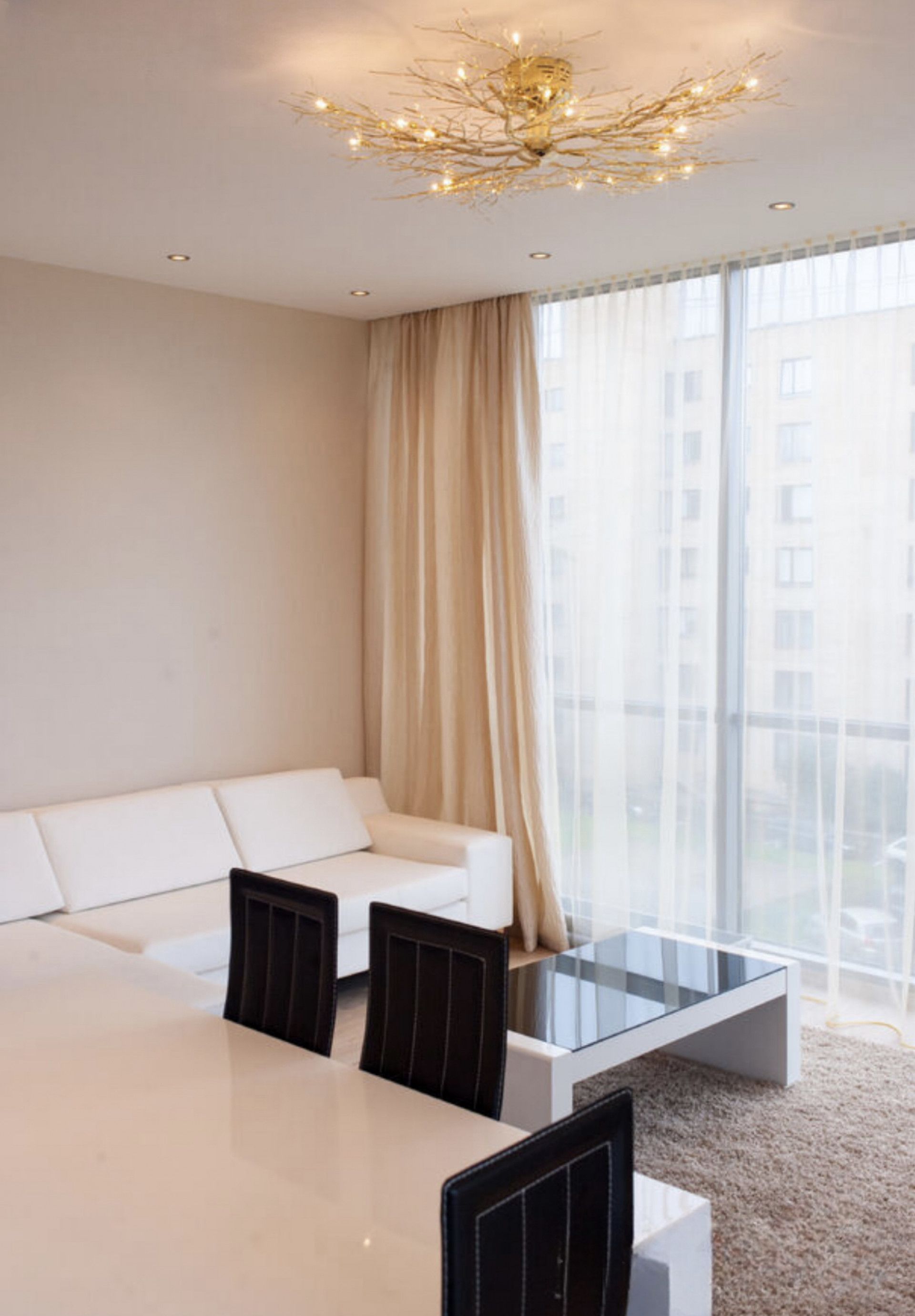 The apartment in a new club-type project offers a modern and comfortable living environment. This bright apartment is fully equipped with everything necessary for comfortable living. Each room features large panoramic windows, allowing ample natural light and creating a sense of spaciousness.