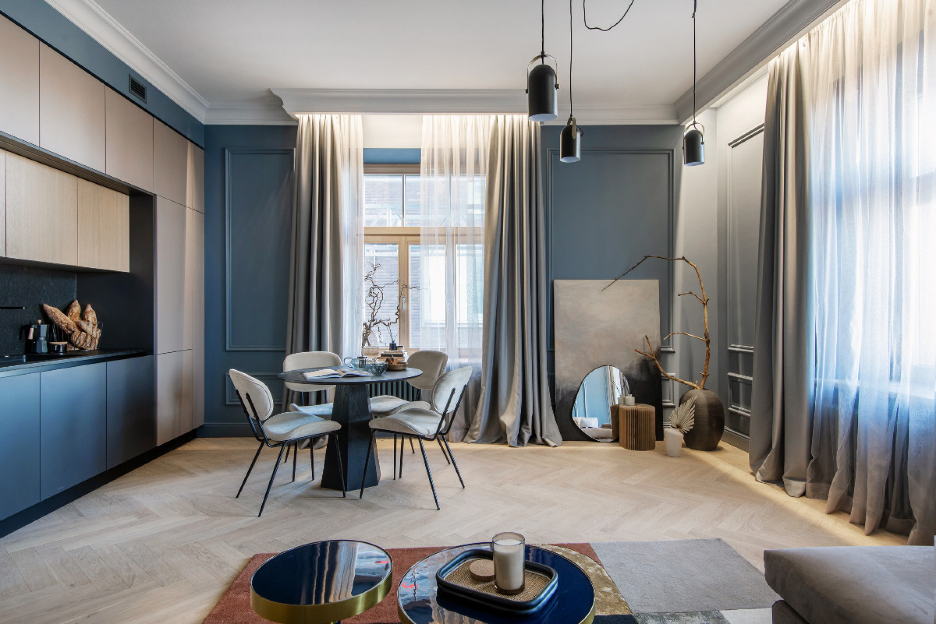 All flats are offered with full finishing, which allows you to move in immediately. High ceilings and large windows fill the rooms with natural light, creating a feeling of spaciousness.