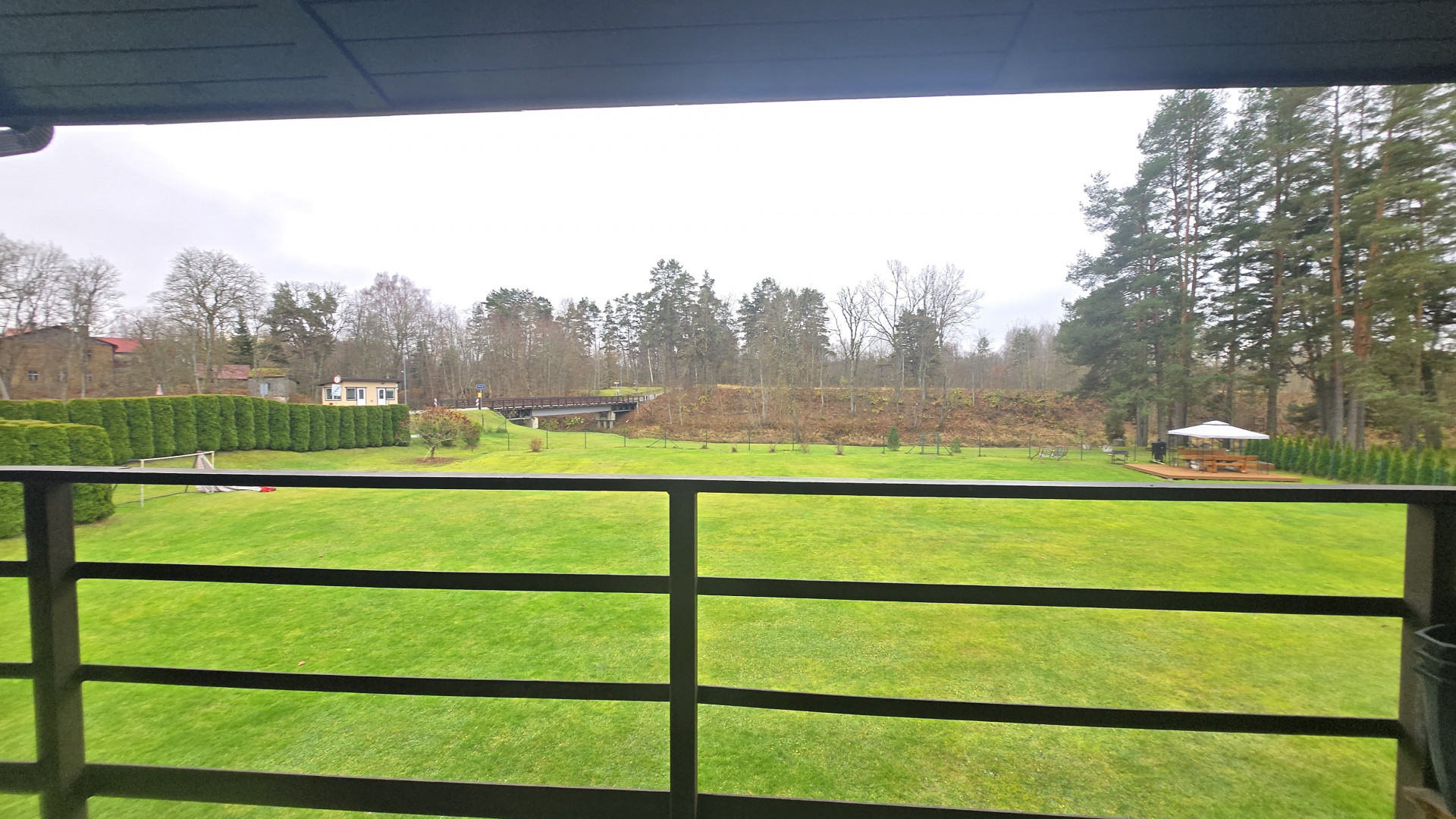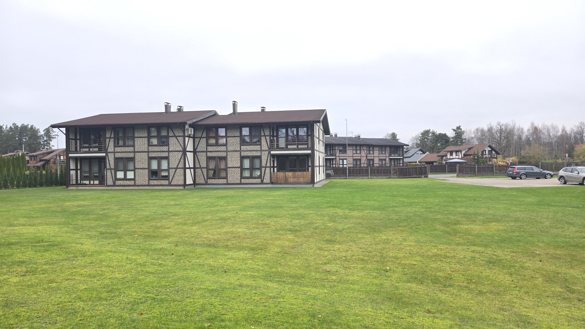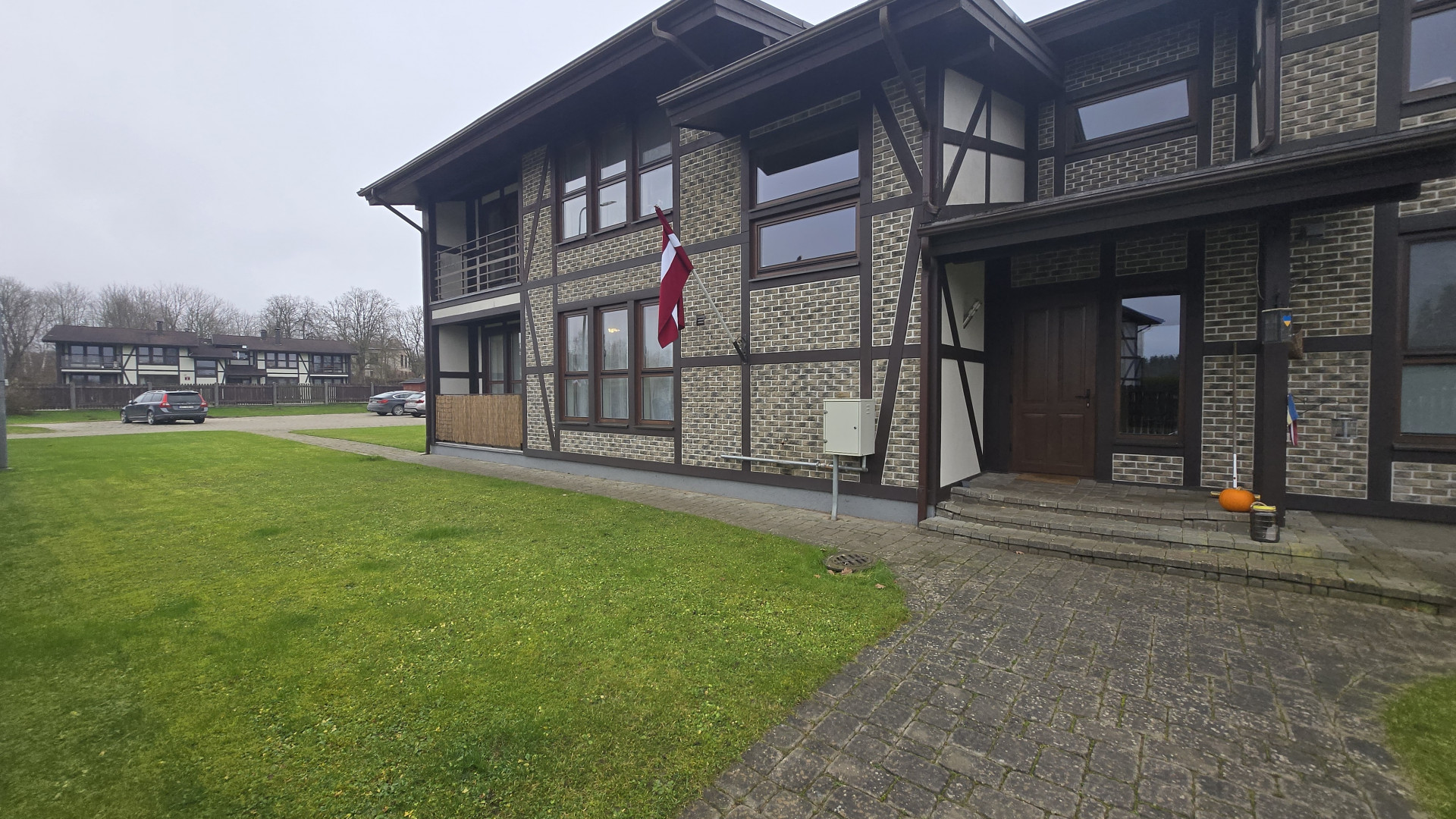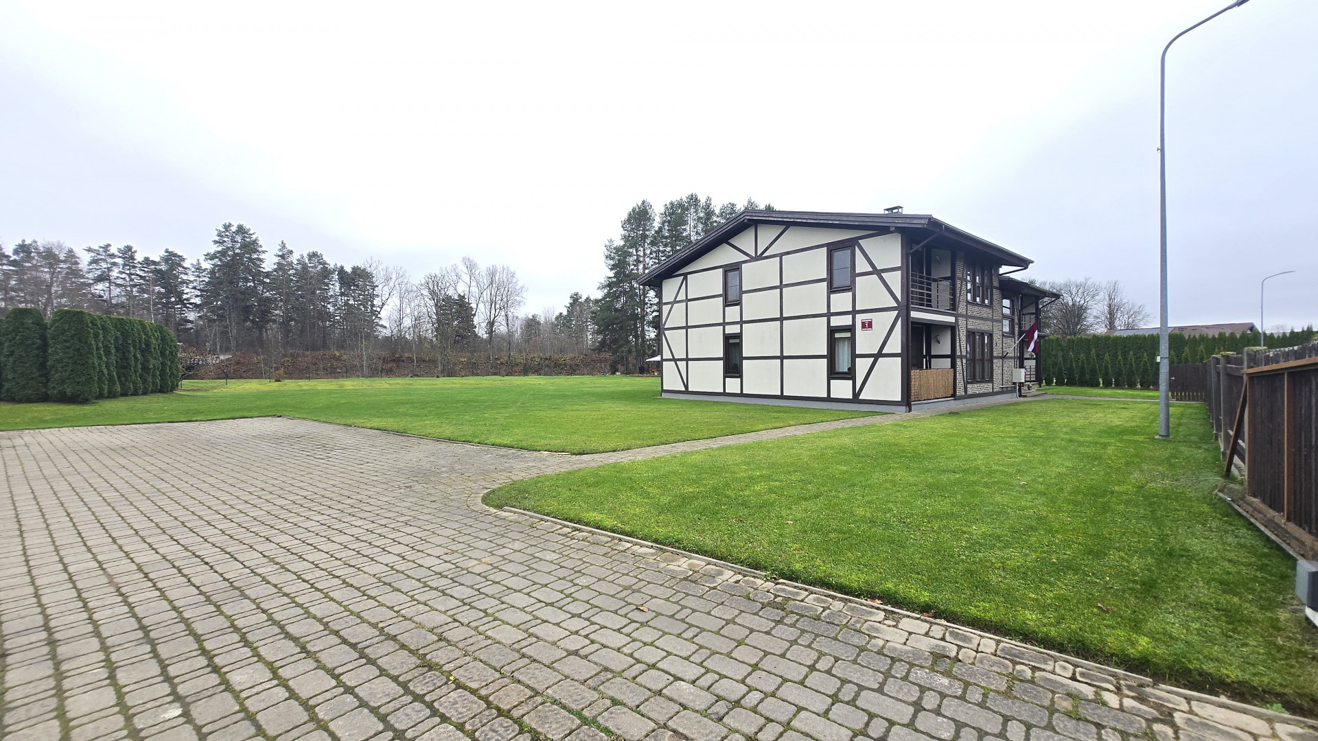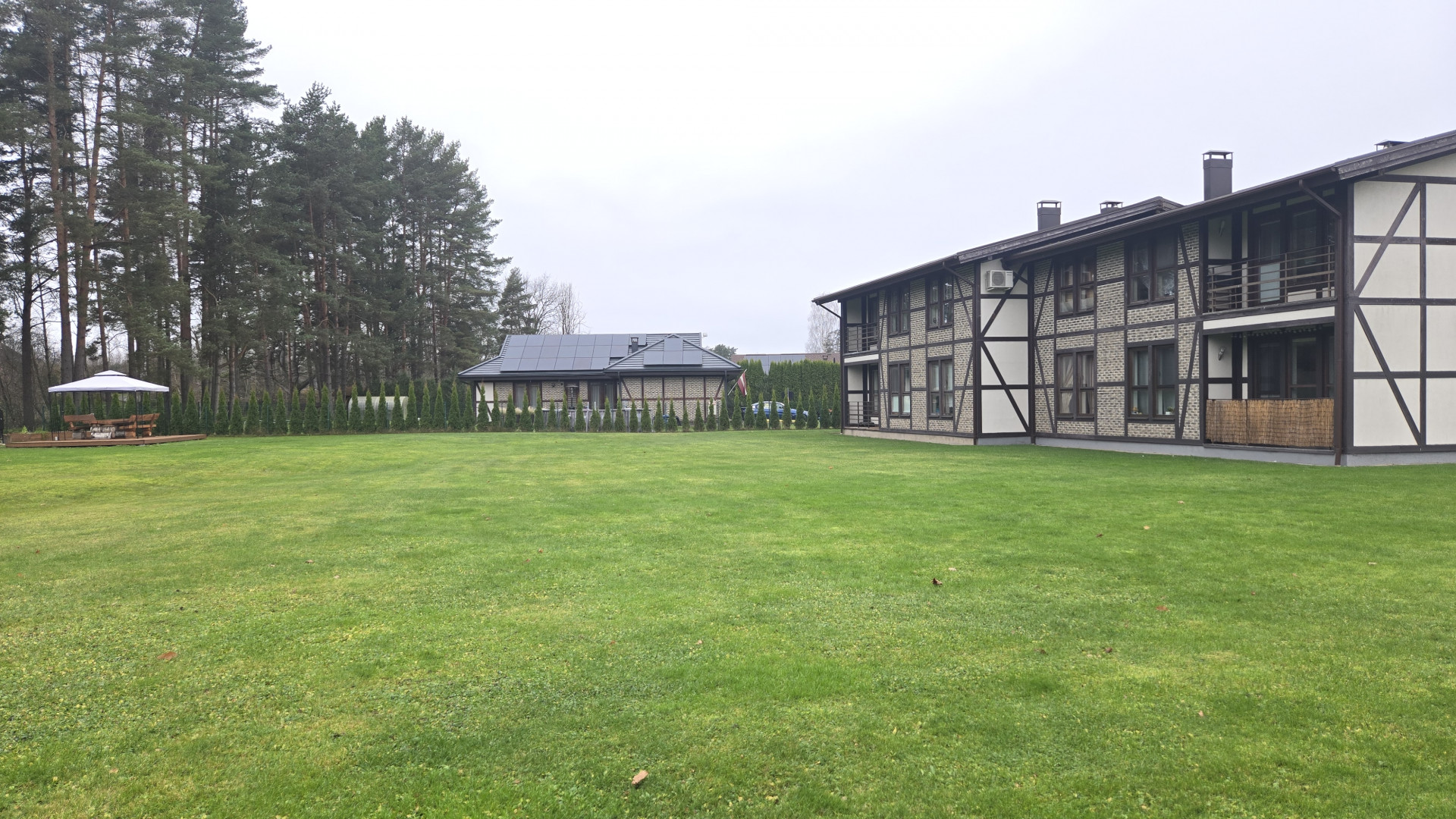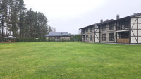 A gated area around the house, private parking, a pavilion, a children's playground, and excellent public transport connections to Riga, Salaspils, and Ogre.