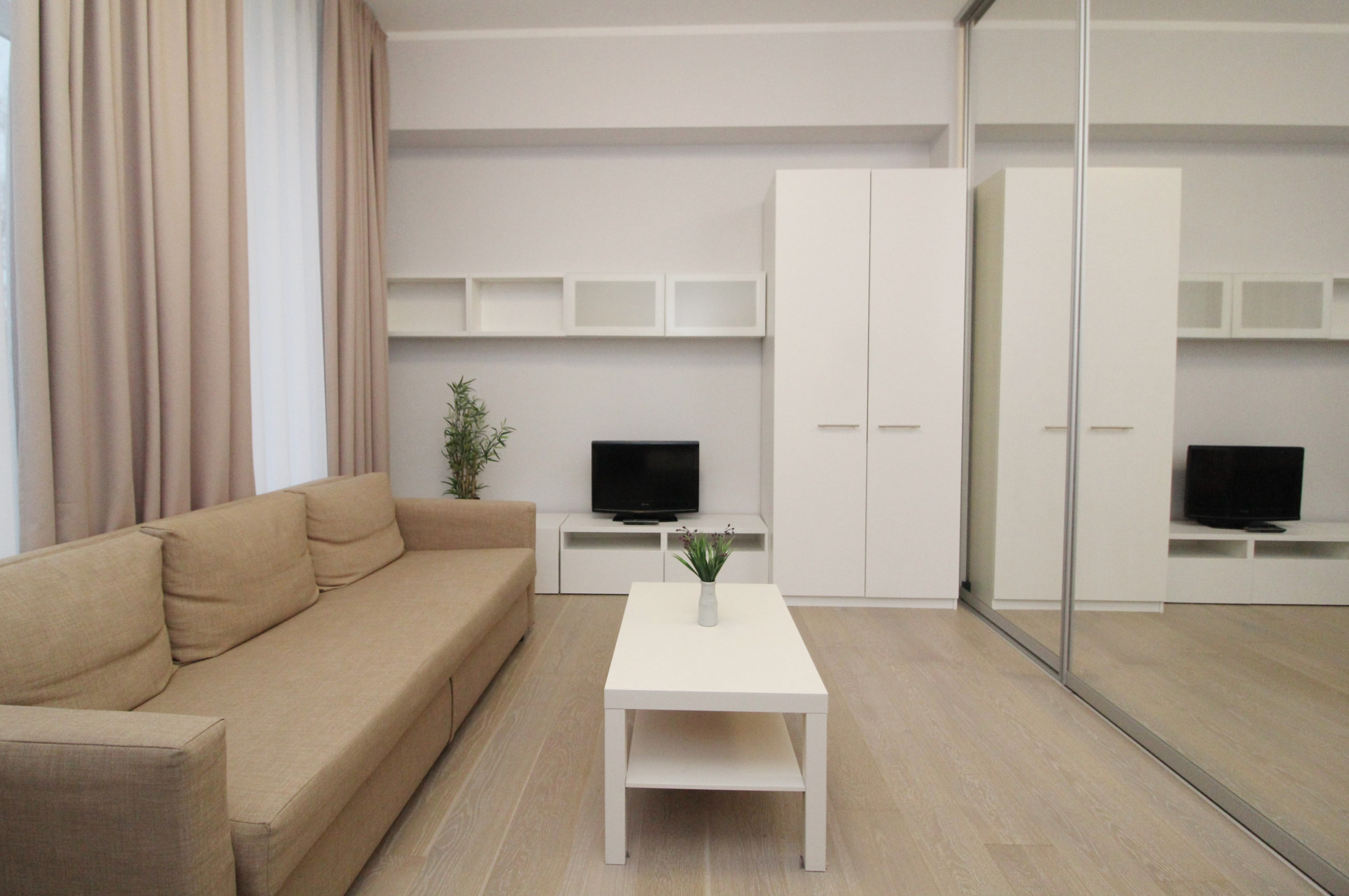 The apartment is equipped with all furniture and appliances for a comfortable living.