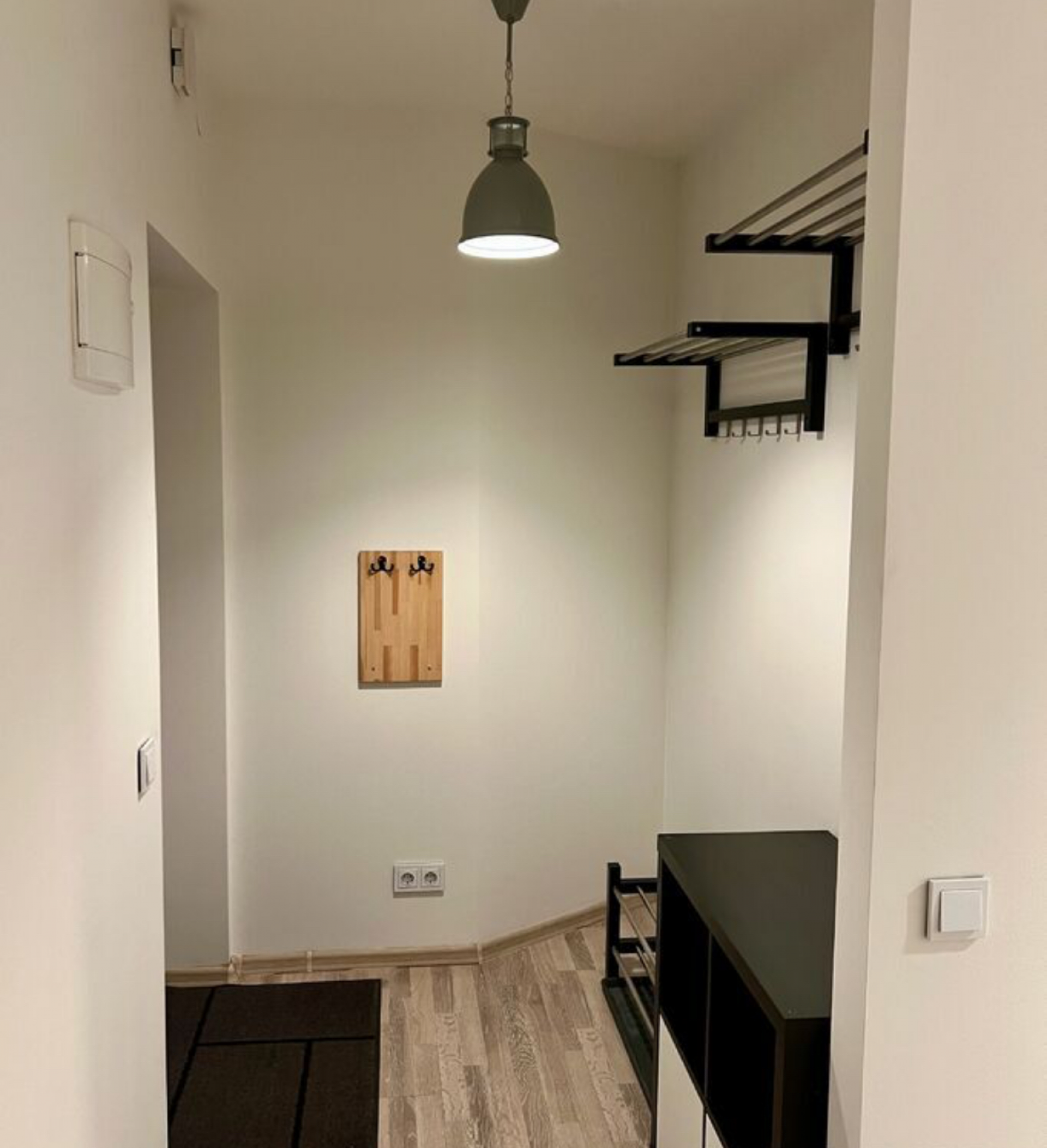 ⁃ Hallway with furniture for outdoor clothes and footwear.