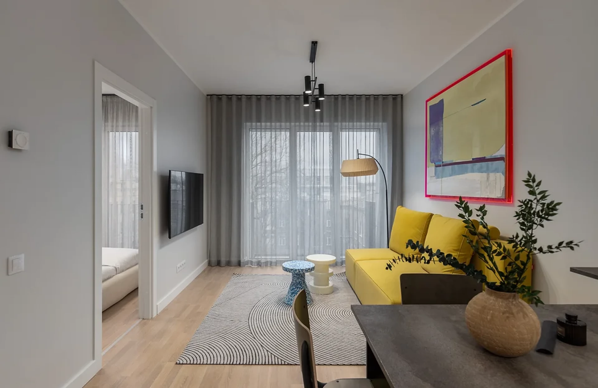 This flat is ideal for those who appreciate comfort and functionality. The spacious living room is combined with a modern kitchen - a single space for relaxing and receiving guests.