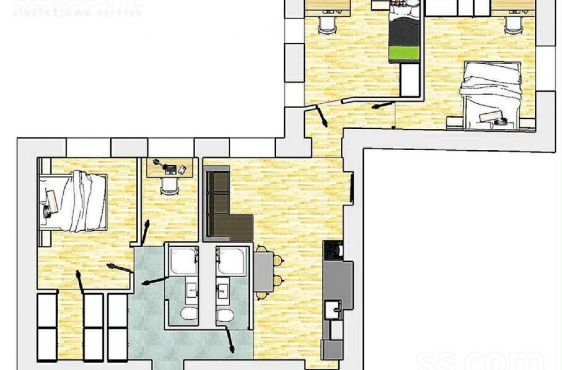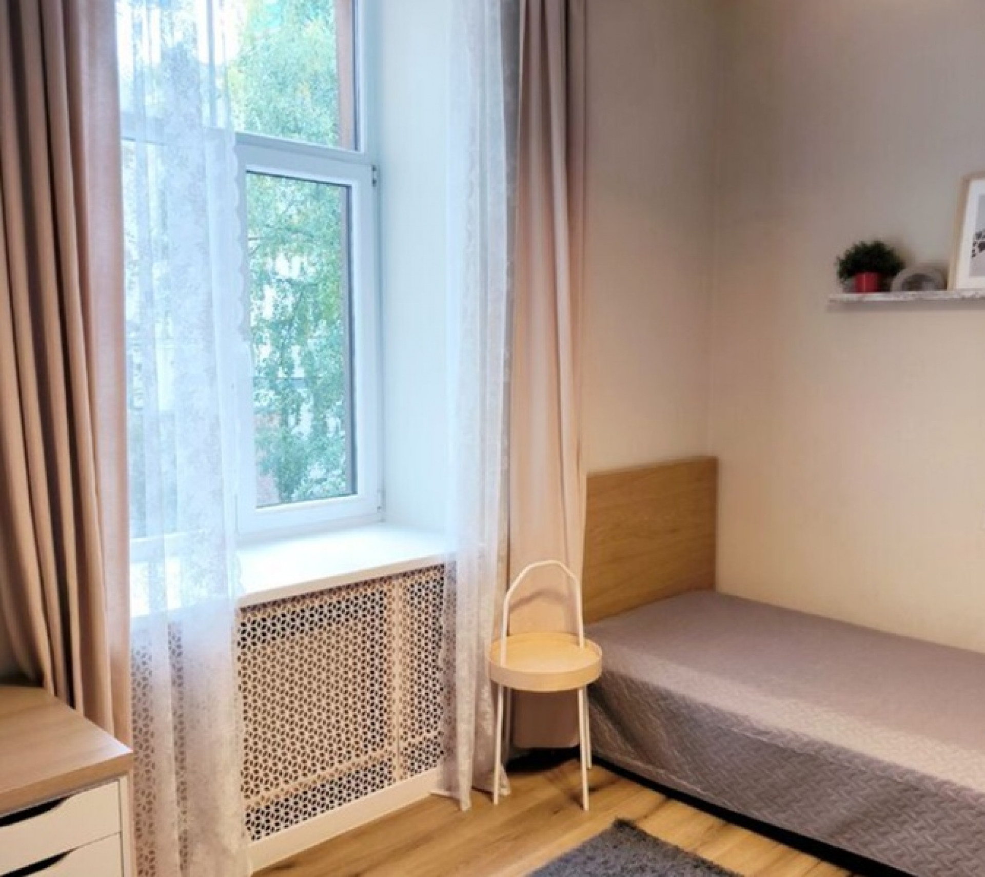 Izīrējas gaišs un mājīgs, pilnībā atjaunots piecu istabu dzīvoklis renovētā ēkā pašā Rīgas centrā. Dzīvoklis ir pilnībā mēbelēts un aprīkots ar visu nepieciešamo sadzīves tehniku: ledusskapi, televizoriem, mikroviļņu krāsni, elektrisko tējkannu, indukcijas plīti, cepeškrāsni, veļas mašīnu un putekļsūcēju.