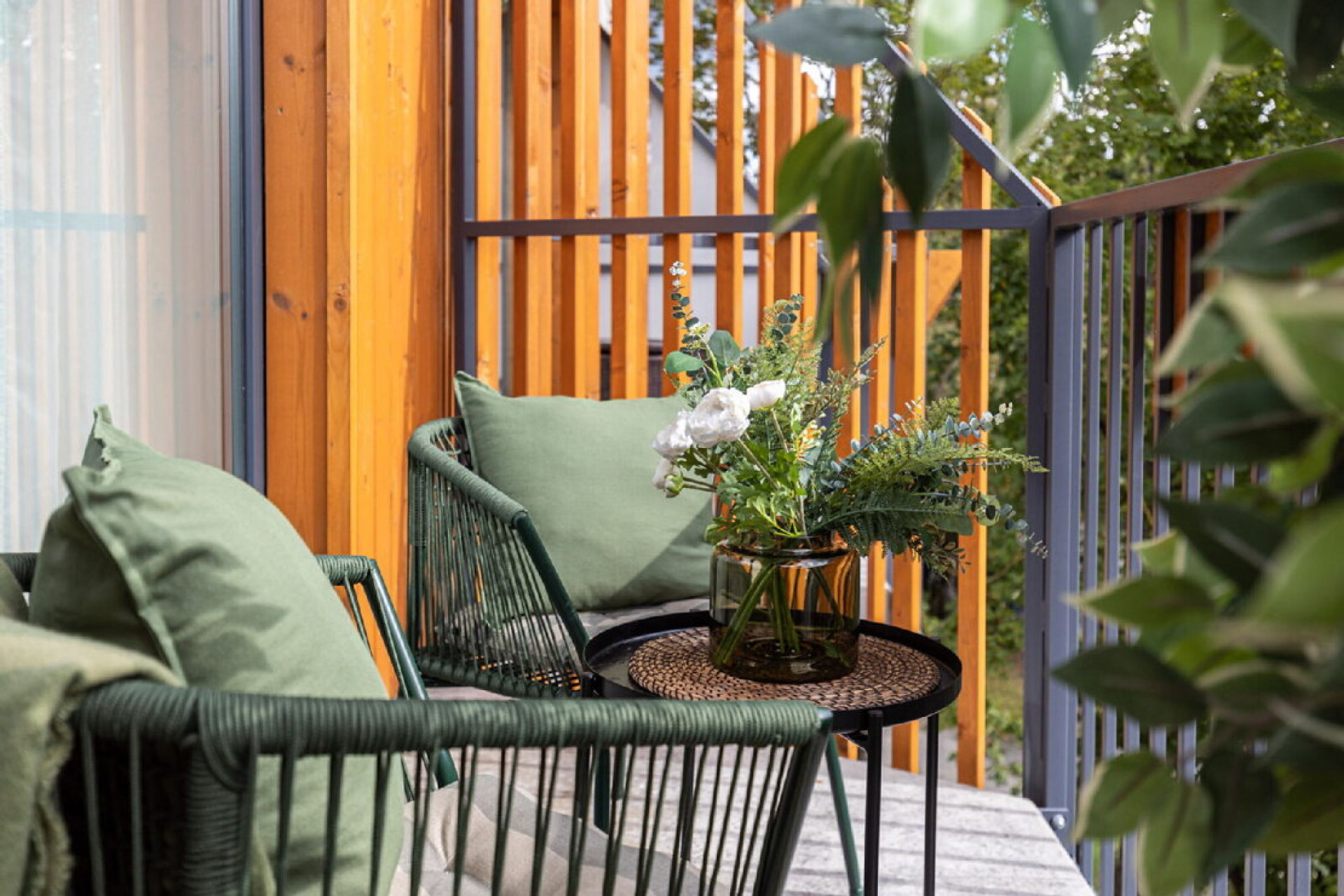 • Katram dzīvoklim ir balkons vai privāts dārzs;
