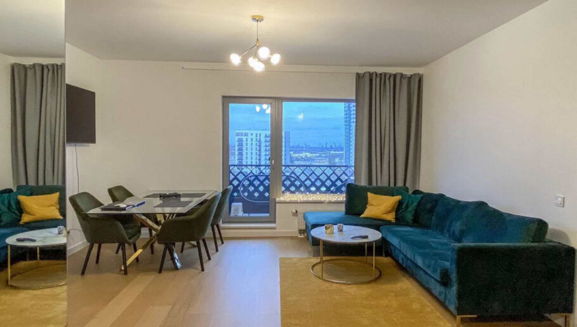 Moderns, gaišs 3-istabu dzīvoklis ar iebūvētu tehniku un mēbelēm Rīgas centrā, Skanstes rajonā.
