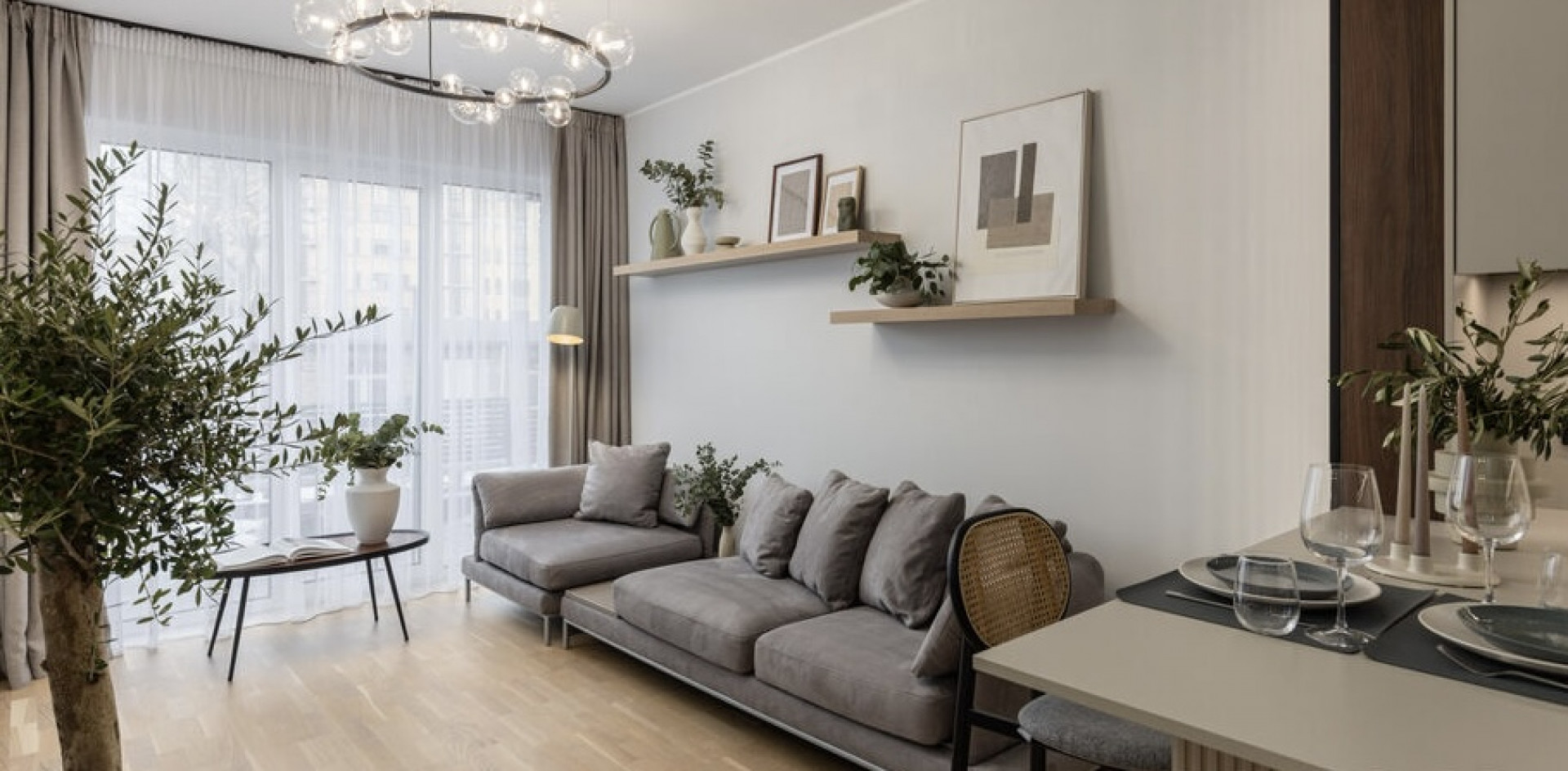 Augsti griesti; Augsti, plaši logi, kas vizuāli palielina telpu un piepilda dzīvokli ar gaismu.