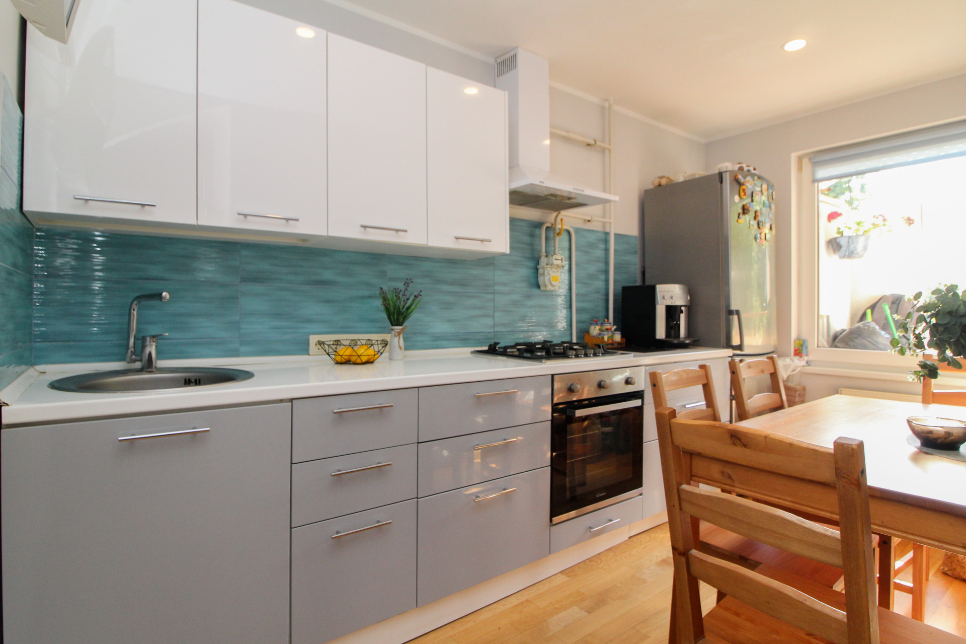 - pilnīgi aprīkota virtuve ar modernu iebūvēto sistēmu un sadzīves tehniku;
