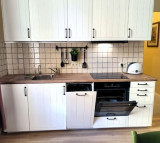 atsevišķa virtuve ar visu nepieciešamo sadzīves tehniku — ledusskapis, indukcijas plīts, cepeškrāsns, mikroviļņu krāsns, elektriskā tējkanna, trauku un veļas mašīna, putekļsūcējs;